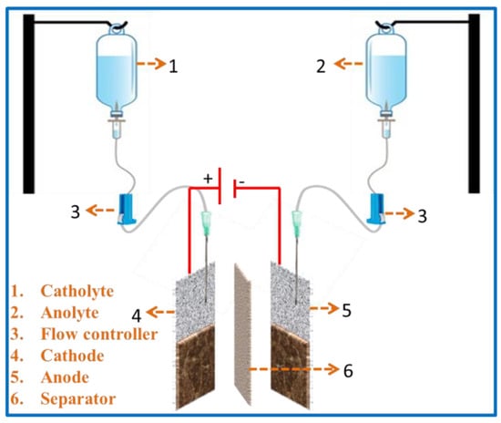 Energy crisis is one of the global issues that act as a barrier to the industries, science and technologies, and other energy needs in our day-to-day life. To resolve this, it is necessary to insist on the energy grid that will balance this peak demand without producing an excess amount of energy. Moreover, non-sustainable extraction causes the cost of fuels to grow continuously due to environmental and economic factors. However, the solar, thermal, and geothermal methods, etc., are being developed to continuously crack the energy emergency []. Intermittent energy sources such as these needs to be balanced by energy storage devices such as batteries and supercapacitors. Batteries are very versatile and provide improved performance. Some of the main issues recently faced on the conventional Li-ion battery are that the Li-S battery is of high cost, hazardous and self-discharge []. So, there is a definite need for finding an alternative that leads to the emergence of the redox flow battery (RFB).