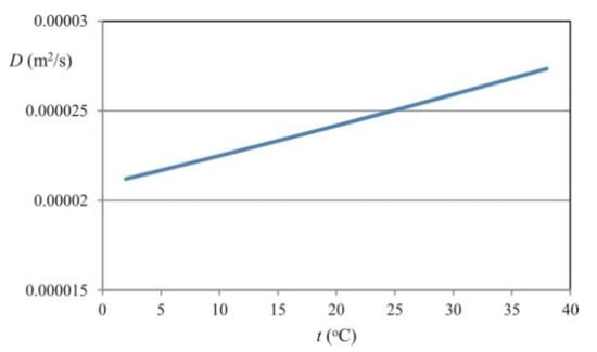 in which temperature is expressed in Kelvin, and pressure is expressed in atm. The equation is correct for temperatures ranging from 280 to 450 K. The dependence between the kinematic diffusion coefficient for water and the temperature is shown graphically in Figure 1.