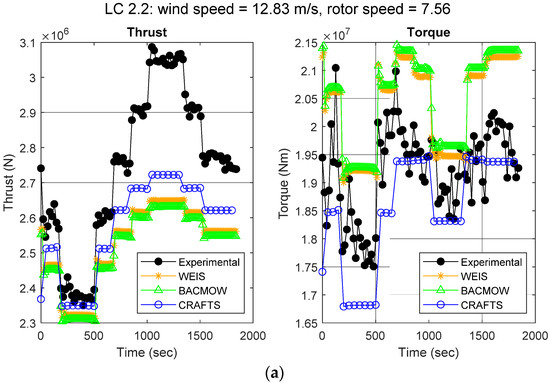 Thrust and torque histories for (a) LC 2.2 and (b) LC 2.4.
