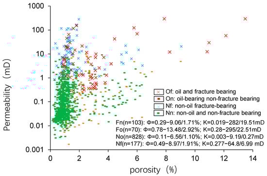 Correlation between core porosity and permeability in the strike-slip fault zone in the northern Tarim Basin (after reference [7]).