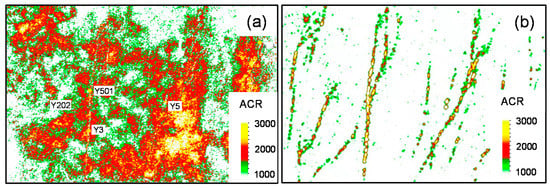 Comparison of (a) the amplitude change rate diagram of the original data and (b) the amplitude change rate diagram after multiple filtering processes of the top of the Middle Ordovician (ACR: amplitude change rate; modified after reference [16]).