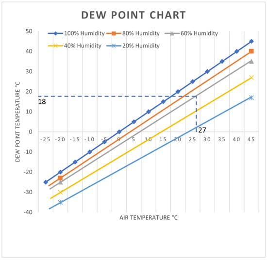 The conditions for motor internal condensation can easily be achieved, with reference to Figure 3 produced from data from F.E. Branch [28], with an air temperature of 27 °C and a humidity of 60%, the dew point is 18 °C.