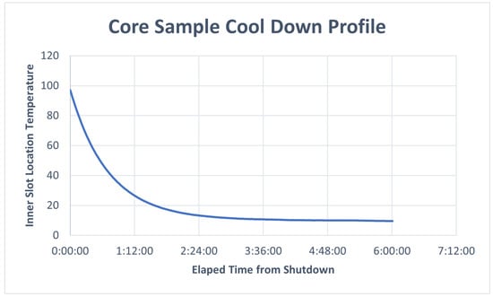 Recorded temperatures shown in Figure 17, indicate that the temperature across the core segment thermocouples T2–T6, Figure 17, only varied by approximately 2.9 °C.