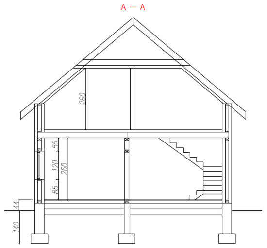 Schematic plan of the ground floor and the attic of the analyzed building (A–A means vertical section line).