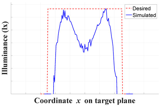 Figure 21. Illuminance distribution curves of two adjacent lighting points generated by the GA-optimized solution.