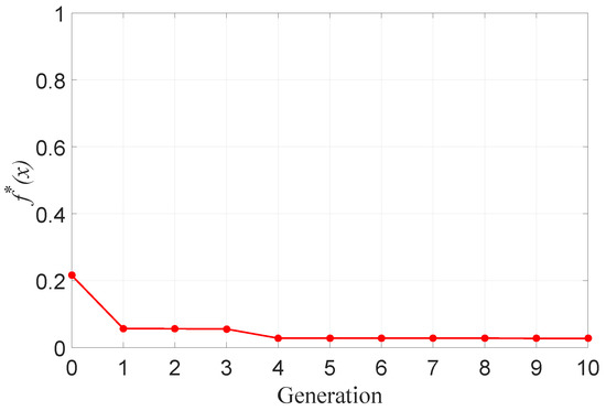 Figure 18. Value of the evaluation function × generation of the genetic algorithm.