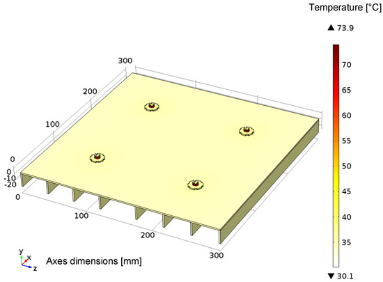 Figure 19. HP-LED luminaire surface temperature for the result optimized by genetic algorithm.