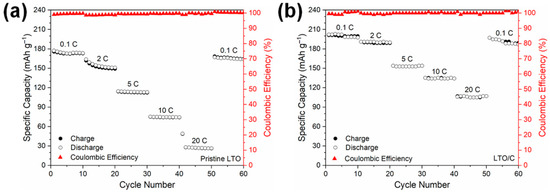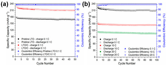 - Dhaiveegan, P.; Peng, H.T.; Michalska, M.; Xiao, Y.M.; Lin, J.Y.; Hsieh, C.K. Investigation of carbon coating approach on electrochemical performance of Li4Ti5O12/C composite anodes for high-rate lithium-ion batteries. J. Solid State Electrochem. 2018, 22, 1851–1861. [Google Scholar] [CrossRef]