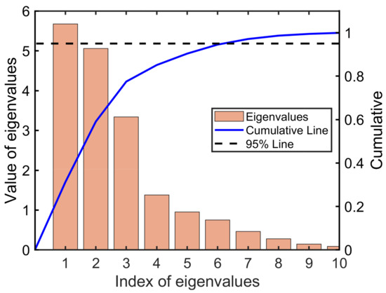 Demonstration of the eigenvalues from the modes of variation and their cumulative sums.