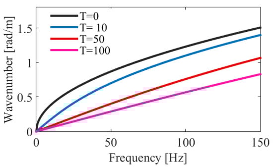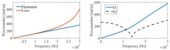 and replacing the spectral form of solution as in Equation (30), the characteristic equation for the wavenumbers , will be [32,42]