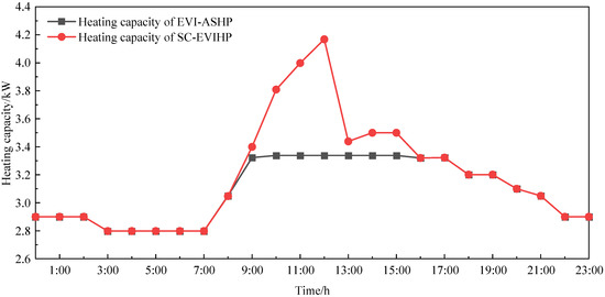 Heating capacity of the SC-EVIHP system.