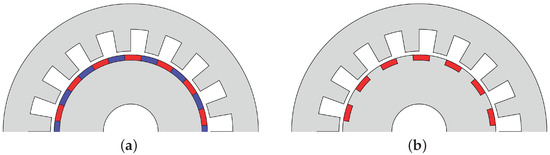 - Zarko, D.; Ban, D.; Lipo, T.A. Analytical calculation ofmagnetic field distribution in the slotted air gap of a surface permanent-magnet motor using complex relative airgap permeance. IEEE Trans. Magn. 2006, 42, 1828–1837. [Google Scholar] [CrossRef]