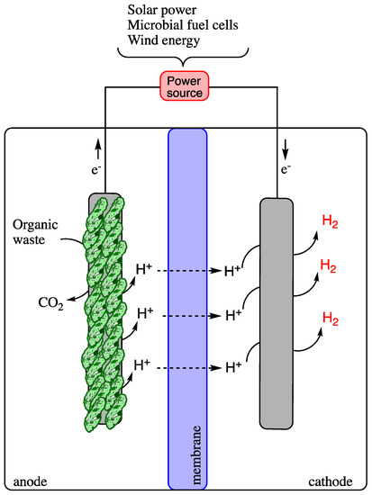 - Sinha, P.; Pandey, A. An evaluative report and challenges for fermentative biohydrogen production. Int. J. Hydrog. Energy 2011, 36, 7460–7478. [Google Scholar] [CrossRef]