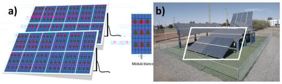 The energy requirement of the desalination plant is supplied by a 120 kWh d−1 PV power station named “Parque Solar ITSON”, constituted by 84 PV modules, divided into three arrays: fixed (24), single axis (36), and dual axes (24) with energy generation of 30, 40 and 50 kWh d−1, respectively. A fixed array of 24 PV modules was used for this study, and the modules were divided into two sections of 12 PV modules, with an array of 6 modules connected in series by 2 modules connected in parallel (Figure 1). The energy productivity record was compiled daily and consulted on the platform “EnlightenManager”. The PV modules (REC Solar REC240PE-BLK, Singapore) used for the experimental tests were connected to an ENPHASE micro-inverter (M215-60-2LL-S). Table 1 and Table 2 show the technical specifications for PV modules and the micro-inverter, respectively.