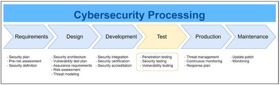 Cybersecurity assessment is one of the crucial steps for productization before releasing a product to the market. The goal of the cybersecurity assessment is to improve product quality and find security vulnerability by performing thorough robustness testing of host systems and communication interfaces. These testing steps need to consider compliance of industrial and government regulations, minimize the potential risks of unexpected cybersecurity accidents, and enable demonstrable cybersecurity of the final products to customers. Normally, the cybersecurity department within the product group executes the cybersecurity assessment to guarantee a consistent and impartial approach in providing robustness testing of software application, security assessment of functions, and applications of the testing devices. They assess and validate the reliability, quality, and flexibility of a product by the state-of-the-art cybersecurity test technology and equipment. Then, they provide a solution to improve product quality and security enhancement of the product’s portfolio. As shown in Figure 2, cybersecurity plans need to be considered and integrated during the productization process. Depending on the hardware, software, and communication of the developed product, different types of security architecture, definition, assessment, and threat modeling will be conducted. For instance, if an IED supports remote access control via wireless communication, more Defense in Depth (DID) approach of cybersecurity design is needed compared with the IED with only wired communication. This figure is one of our novelties based on the testing process (regarding the penetration, security, and vulnerability assessments) that can be conducted by an automated cybersecurity tester.