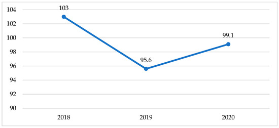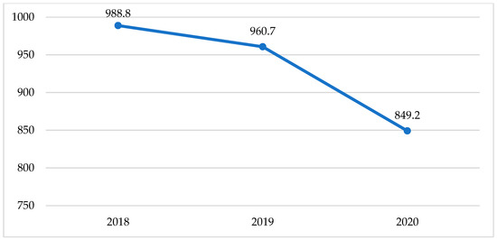 At the same time, in the context of the statistical data “Ukraine in numbers 2020” in Figure 2, the dynamics of the level of emissions of pollutants into the atmospheric air from the supply of electricity, gas, steam and air conditioning in Ukraine in 2020 kept a downward trend. In this context, as a justification for this trend, it should be noted that according to the data of the Ministry of Energy of Ukraine in August 2020, the share of renewable energy reached 16.6%; this was safe for the environment and ensured both the implementation of the principle of resource conservation (rational nature management) and climate neutrality in energy.