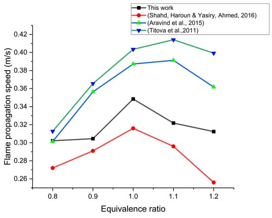 The calibration of flame propagation speed compared to other LPG experiments [25,26,27].