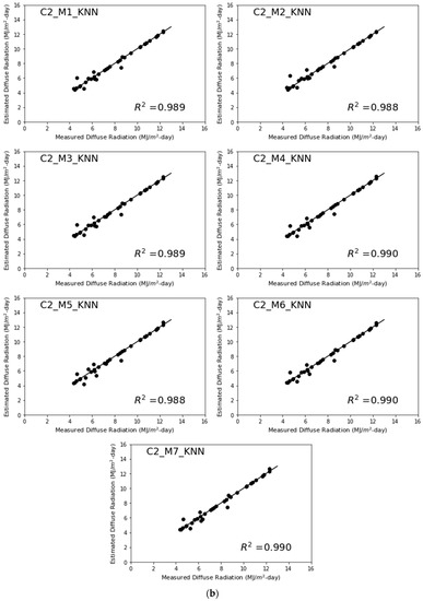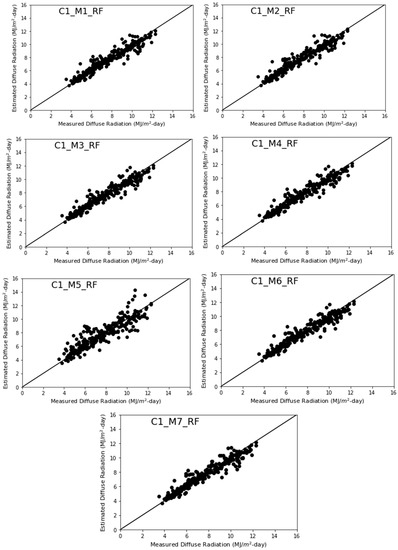 - Paulescu, E.; Blaga, R. Regression models for hourly diffuse solar radiation. Sol. Energy 2016, 125, 111–124. [Google Scholar] [CrossRef]