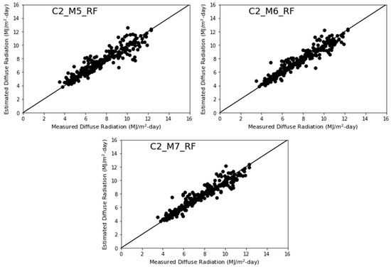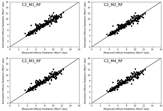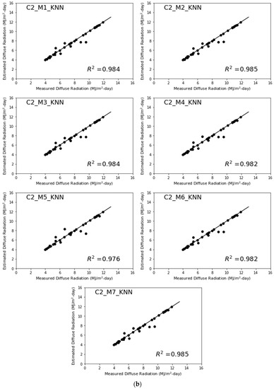 Fourteen models were created and compared by Wattan and Janjai [32] at two different tropical locations. Eight models were proposed by Ulgen and Hepbasli [33] for the DSR forecast for Turkey. For Trabzon, Turkey, Kaygusuz [34] has found seven empirical relationships that can predict DSR. Bakirci [35] presented six models to forecast the monthly average DSR for Erzurum, Turkey, using a similar methodology. Eight models were created by Blaga [36] for the estimation of hourly DSR. In order to determine the solar energy potential in the Azores, Maggareiro et al. [37] evaluated the performance of various DSR models. New correlations were proposed by Li et al. [38] to anticipate China’s monthly mean daily DSR. For Kerman (Iran), Safaripour and Mehrabian [39] created models to predict horizontal DSR and GSR using linear regression analysis. In Rio de Janeiro, Filho et al. [40] classified solar radiation and created models to forecast GSR, DSR and BSR. Despotovic et al. [41] examined DSR models that were already in use from 267 sites around the globe that covered different climatic zones.