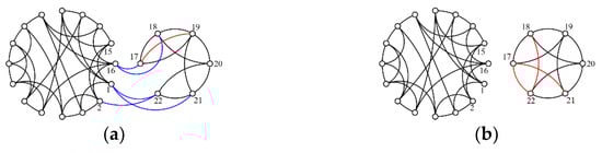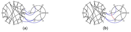 Figure 3. Schematic diagram of repeated edges and disconnection. (a) Schematic diagram of repeated edges; (b) schematic diagram of disconnection. - Repeat step 3. It is necessary to ensure the chosen nodes are not selected again until all the added nodes have been chosen, as shown in Figure 2b.