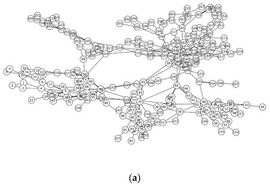 A provincial power grid is shown as an example. The corresponding power grid and communication network topological model is established in Figure 6a, and 6c. There are 258 nodes and 414 edges in the province’s power grid, and 220 nodes and 294 edges in the communication network. The scale of the nodes and links of the power grid and the communication network is different. It is obvious that the topology interdependency of the power grid and the communication networks is not exactly “one to one correspondence” relationship. The number of nodes and edges in the power grid is more than that in the communication networks.