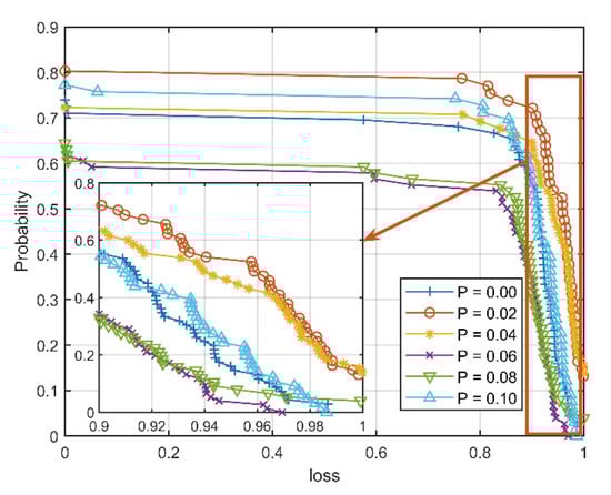 Complementary cumulative probability distribution diagram of load loss in power CPS with different reconnection probabilities.