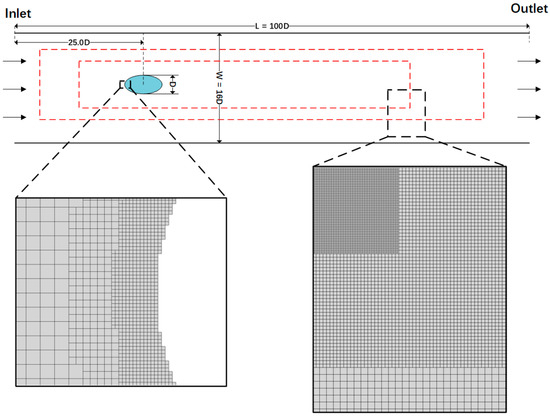 The inherent advantage of the LBM is related to the use of regular meshes with uniform grid spacing. Obviously, this regularity limits the application domain of the LBM from an efficiency aspect, since uniform meshes are less suitable for simulating flows with strong local gradients. From the point of view of physical phenomena and simulation scenarios, only a small part of the entire flow field area must be high-resolution in a complex flow simulation. It is not necessary to refine all flow field areas. In order to focus computational resources on the regions where high accuracy is required, many advanced methods in computational fluid dynamics rely on grid refinement. Initially, the LBM is a finite difference scheme. This means that interpolation of the particle distribution is necessary for cases where exact boundary conditions or local mesh refinement techniques are applied and mass conservation conditions cannot be easily imposed. When considering locally embedded meshes, the LBM uses the same treatment scheme. Filippova and Hänel firstly introduced the local grid-refinement treatment to the LBM [18]. The main advantages of the local grid-refinement processing method are as follows. On the one hand, the evolution time step on the coarse grid is larger and less computationally demanding, so that the boundary information can be propagated faster over the entire flow field region to obtain the general structure of the flow. On the other hand, a fine grid can capture the flow information in the region of drastic changes [19]. It can balance computational efficiency and accuracy because the evolution of this method on coarse and fine grids is coupled in both directions. Lin and Lai developed a unidirectional coupling method based on the exchangeability of distribution functions on different grids based on this method [20]. The method from Filippova and Hänel is unstable in some cases. In addition, the distribution functions can be exchanged on different resolution grids in the method from Lin and Lai, which can lead to certain errors. To solve the problem, Dupuis and Chopard constructed a local grid-refinement method that considers the distribution function and bidirectional coupling. An acceleration method was proposed that can significantly improve the computational efficiency [21]. Node-based [22,23,24] and volume-based [25,26,27] approaches have been proposed to incorporate grid refinement into the LBM [28].