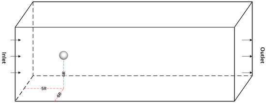 Geometry diagram shows the coordinate system and computational domain of the sphere around the flow in three dimensions.