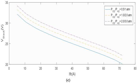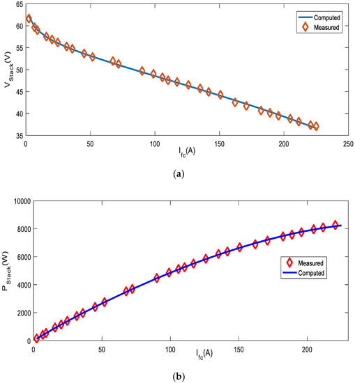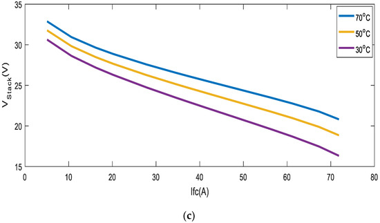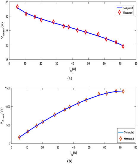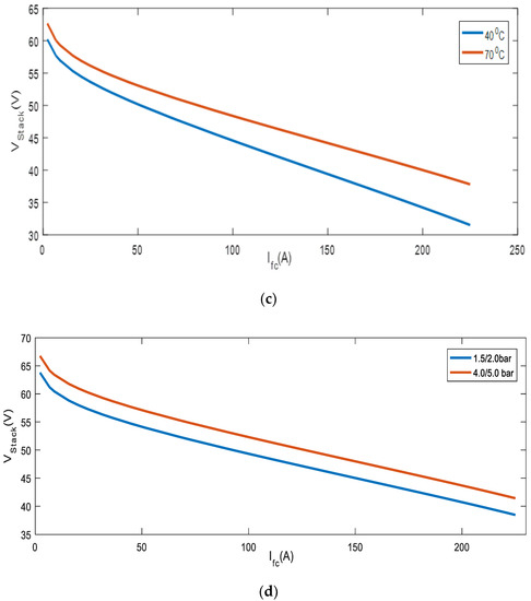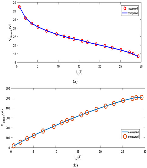 The mathematical model of the PEMFC is developed to express the main steady-state characteristics of the PEMFC [63]. The proposed model includes the voltage drop of the FC named: (1) activation overpotential , (2) ohmic voltage , and (3) concentration overpotential .