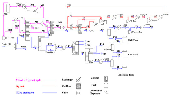 Mixed refrigerant N2-CH4 expansion liquefaction process integrated with ethane separation for high ethane-content natural gas [91]. Reproduced with permission from Elsevier (license number 5413450518102).