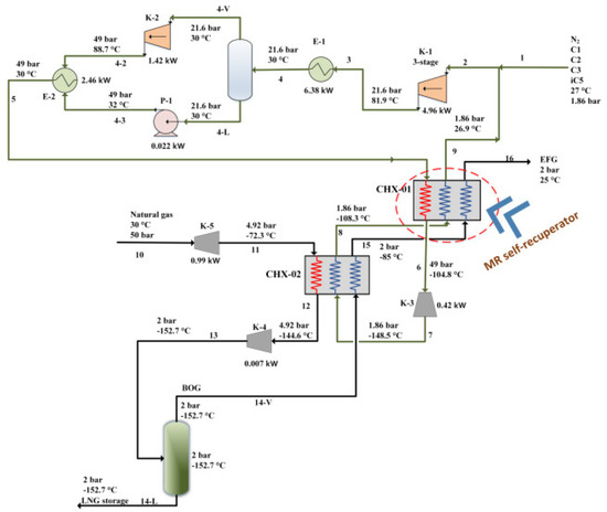 - Qyyum, M.A.; Haider, J.; Qadeer, K.; Lee, M. Performance enhancement of offshore LNG processes by introducing optimal mixed refrigerant self-cooling recuperator. In Proceedings of the 11th International Conference on Applied Energy 2019, Västerås, Sweden, 12–15 August 2019. [Google Scholar]