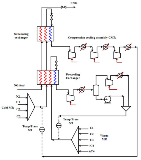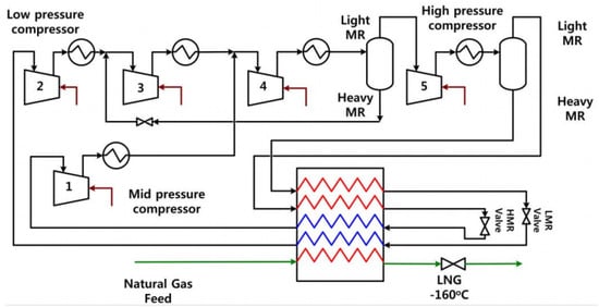 - Khan, M.S.; Karimi, I.A.; Lee, M. Evolution and optimization of the dual mixed refrigerant process of natural gas liquefaction. Appl. Therm. Eng. 2016, 96, 320–329. [Google Scholar] [CrossRef]