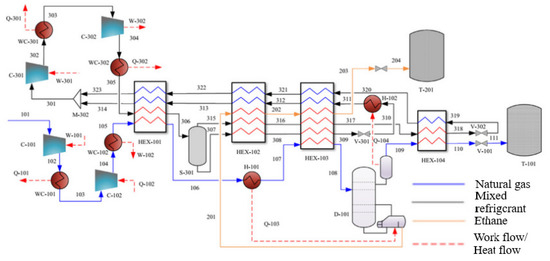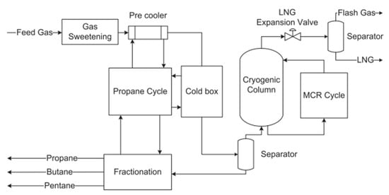 Process flow diagram of the proposed optimized process for LNG-LPG-pentane plus production [63]. Reproduced with permission from Elsevier (license number 5413380649895).