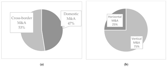 Descriptive statistics: (a) Cross-border vs. domestic M&A; (b) horizontal vs. vertical M&A. Source: authors’ calculations.