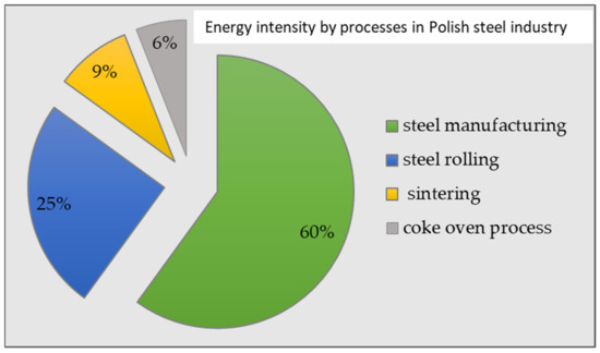 Energy intensity in Polish steel industry by process. Source: own elaboration based on Polish Steel Technology Platform (in Polish: PPTS) [64].