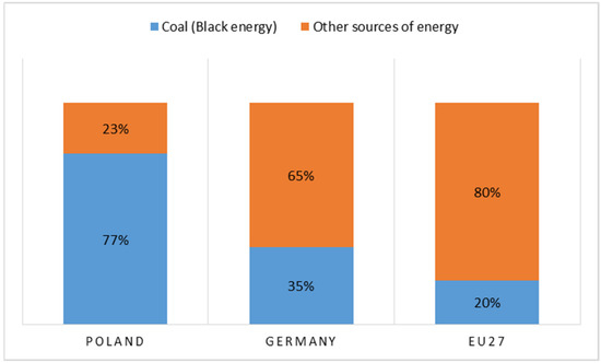 Poland’s energy economy is based on a document adopted in 2021 called the Energy Policy until 2040 (PEP2040) [76]. The Polish policy is based on the assumptions of the world and EU energy policy called green energy due to the need to diversify thermal raw materials (limiting coal mining) and diversify energy sources (e.g., green hydrogen). The whole world is pursuing a policy of using non-carbon energy sources [77]. Industry can use energy recovered from production equipment, energy extracted from industrial waste, solar and wind energy, etc. [78,79]. Unconventional and renewable energy is developing in many countries. The world is constantly looking for other sources of energy besides coal to contribute to reducing adverse climate change [77,78,79,80,81,82,83]. The world, especially in highly developed countries, is building strong links between climate change and sustainable development [80]. Governments in many countries built the prevention of further climate change into strategic economic development goals. The development of the world’s economies must take place following the laws of the environment. The Polish government, in its system of strategic documents on sustainability, operationalises the “Strategy for Responsible Development” (with an outlook to 2030) [81] in line with EU policy. The industry is rationalising the use of resources and reducing the negative environmental impact of manufactured products, which should remain in the economy for as long as possible, and waste generation should be minimised as much as possible [82,83,84]. In the energy economy, the direction of the diversification of energy sources and reduction in energy and heat obtained from coal is being pursued.