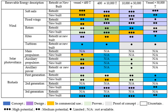 Figure 5 summarizes different renewable energy technology and its potential for the shipping industry according to [32].