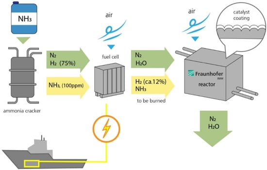 - ShipFC. ShipFC project on first maritime fuel cell to run on green ammonia. Fuel Cells Bull. 2020, 2020, 5–6. [Google Scholar]