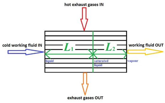 RHX schematic representation showing the preheater, L1, and the evaporator, L2.