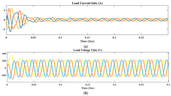 (a) Current and (b) Voltage waveform of the IM with the VOC-based SVM Controller.