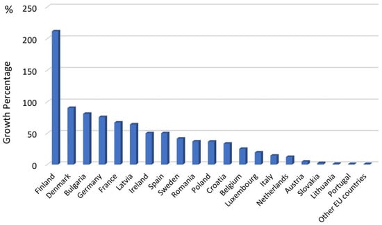 The number of electric buses in cities worldwide has grown in recent years. A recent study by Bloomberg New Energy Finance Electric predicted that EBs will replace over 47% of the world’s total city bus fleet by 2025 [6]. Figure 2 illustrates the year-over-year growth of the battery-electric bus (BEB) fleet in European Union (EU) countries from 2021 to 2022 [7]. In 2017, 9% of all buses sold in Europe were EBs [8]. From 2022 to 2027, the market for electric buses in Europe is anticipated to grow by 18.6%. This shows the trend of switching from conventional buses to electric buses.