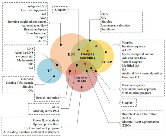 | Wu et al. (2021) [65] | Min maintenance, fast charging station construction, travel to charging stations costs and power loss of fast chargers | Fast charging 3 | BPSO | Mathematical program | Yangjiang, China | The bus terminuses clustered by the Affinity Propagation approach in order to estimate the approximate number of charging stations |