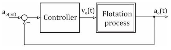 Coal flotation is the most effective technique used to improve the nature of fine particles by reducing contaminants and has been the subject of many studies [1,2,3,4,5,6]. In Polish coal-processing facilities, the flotation process is a side enrichment process as the feed consists of grains smaller than 1 mm. In industrial practice there are usually measured quantitative parameters of the feed, such as flow rate (qn) and concentration of solids in the feed (kcs). Electromagnetic flow meters are used to measure the flow rate of the feed [7]. Concentration of solid particles is usually measured using a radiometric density meter and less commonly a piezometric meter [7,8,9,10,11]. However, the ash content in the feed (an) is not available for measurement. Of the output signals, which refer to quantitative and qualitative parameters of flotation products, the only one available for measurement is ash content in flotation tailings (ao). This quantity is measured using the MPOF optical ash meter [7,10,12]. Quantitative and qualitative parameters of the concentrate (commercial product) are determined on the basis of periodic sampling, the values of which are determined by laboratory methods. Thus, due to the limited measurement information available on an ongoing basis, the content of ash in flotation tailings becomes a parameter that enables indirect assessment of the quality of the enrichment process. In this case, it rests upon the expert knowledge of the operator, who, on the basis of the current readings of the tailings ash meter, the feed flow meter, and the densimeter, evaluates with some degree of approximation the enrichment process and is able to estimate the required ash content in the flotation tailings (ao(ref)), for which flotation will be duly carried out under these conditions [13].