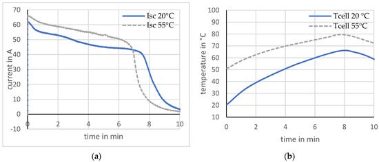 Short-circuit at different ambient temperatures. (a) Current; (b) Temperature.