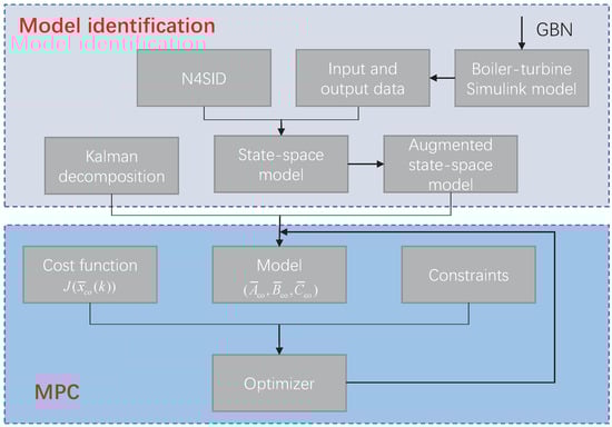In the presented control structure, we show a development and combination of MPC and minimal realization model based on previous works [23,42] for a boiler-turbine system. Compared to the literature in [2,23,25,42], the primary novelty and difference of this paper reside in constructing a state measurable, minimal-realization state-space model for the non-linear boiler-turbine system by using identification method to tackle the process non-linearity that the maintains the simplicity of the framework for linear MPC using state-space model, so that the designed MPC controller also has good tracking ability and implementation efficiency.