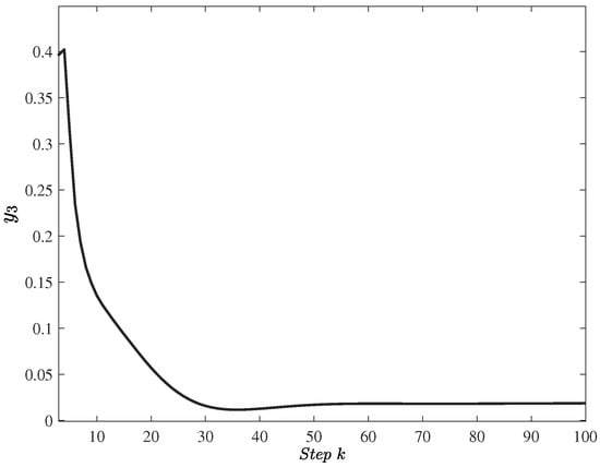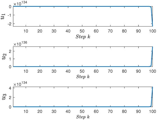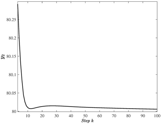 For the minimal realization model (14), the control objectives are to design an effective controller such that the closed-loop system is asymptotically stable, and the constraints are always satisfied over the control horizon. The two objectives are to be achieved by manipulating the control input u to steer the state to the equilibrium point, while the control inputs are required to maintain a desired range. Since the original non-linear system has been transformed into a linearized model, it ensures that the resulting system state of the linearized NMSS model is measurable. Subsequently, it is easy to design a state feedback-based MPC controller so that the drum pressure , electric power , and the drum level converge to the equilibrium point, which will be illustrated in the sequel.