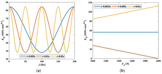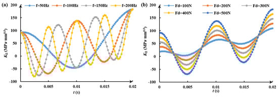 3.2. Effects of Harmonic Dynamic Load on Stress Intensity Factor KII