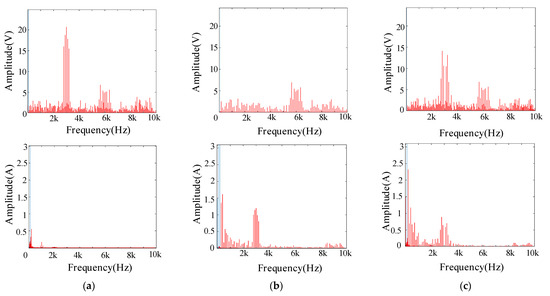 Figure 8a–c shows the frequency spectrums of the circulating current and the output voltage of phase A in the case of θ = π/N, θ = 0 and SDA-based CPS modulation being adopted, respectively. As can be seen from Figure 8b, under the condition of output harmonic elimination, the output voltage has a peak with a maximum amplitude of about 7 V at the frequency 2Nfc (6000 Hz), whereas the circulating current has a peak with a maximum amplitude of about 1.2 A at the frequency Nfc (3000 Hz). As can be seen from Figure 8a, under the condition of the circulating current harmonic cancellation, the output voltage has a peak with a maximum amplitude of 21 V at frequency Nfc, whereas the amplitude at each frequency point of the circulating current is very small. As can be seen from Figure 8c, in the case of SDA-based CPS modulation being adopted, the output voltage has a peak with a maximum amplitude of 14 V at frequency Nfc, whereas the amplitude and density of the spectrum near that frequency point are less than θ = π/N and bigger than θ = 0. The circulating current has a peak with a maximum amplitude of 0.9 A at the frequency Nfc, whereas the amplitude and density near this frequency point are less than θ = 0 and bigger than θ = π/N. The simulation results are consistent with the expression of Equations (10) and (11) and meet the expected results. In order to demonstrate whether n will affect the conclusion, this paper uses the simulation platform to test the maximum amplitude of the circulating current and the output voltage near the frequency Nfc of phase A when n is changed from 1 to 9, as shown in Table 2.