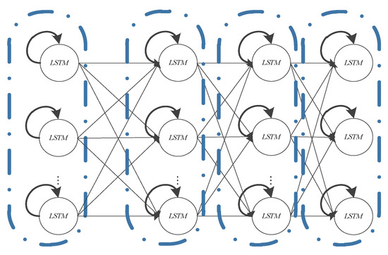 The key to LSTM is the cell state, i.e., memory vector m and which can remember long-term information. The LSTM does have the ability to remove or add information to the cell state, carefully regulated by structures called gates. The gates including an input gate, a forget gate, an output gate, and a control gate is presented in Equations (2)–(7) by i, f, o, and c respectively. The input gate can decide how much input information enters the current cell. The forget gate can decide how much information be forgotten for the previous memory vector , while the control gate can decide to write new information into the new memory vector modulated by the input gate. The output gate can decide what information will be output from the current cell [42].