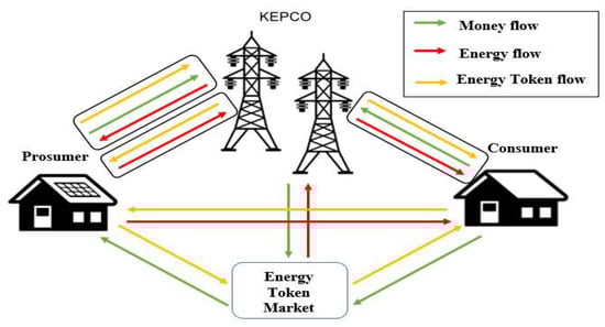 At present, Korea’s P2P ETP for e-prosumers is in very early stages of development. Prior to 2016, Korean e-prosumers with small-scale distributed energy sources such as roof solar PV could sell electricity surpluses only to Korea Electric Power Corporation (KEPCO, Naju-si, Korea) through KPX (Korea Power Exchange, Naju-si, Korea) but not to end-users. To stimulate greater deployment of renewable energy, MOTIE has permitted e-prosumers with small-scale renewable energy sources (generation capacity less than 10 KW) to sell electricity surpluses to end-users within pilot projects. However, most electricity trades are limited to the electricity generated by solar PVs with the help of intermediate agencies such as KEPCO. A pilot project called “smart energy trading based on blockchain” has been initiated in Sejong City, but there is no reliable evaluation of the project yet.
